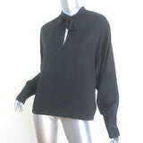 Maje Loiso Tie-Neck Blouse Black Satin Crepe Size 1 Long Sleeve Top