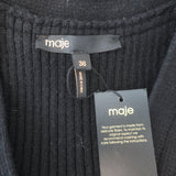 Maje Rimosala Ribbed Knit Mini Dress Black Size 36 NEW
