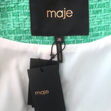Maje Vivete Tweed Blazer Green Cotton-Blend Size 36 V-Neck Jacket NEW