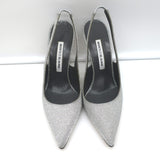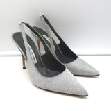 Manolo Blahnik Allura Glitter Slingback Pumps Silver Size 38.5 Pointed Toe Heels