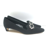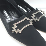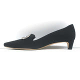 Manolo Blahnik Ansulialo 30 Crystal-Buckle Kitten Heel Pumps Black Silk Size 41