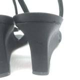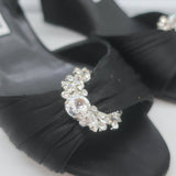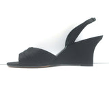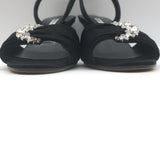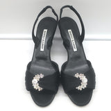 Manolo Blahnik Crystal-Buckle Wedge Sandals Black Satin Size 38 Slingback Heels