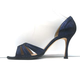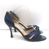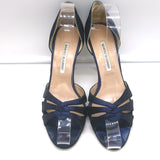 Manolo Blahnik Cutout d'Orsay Pumps Navy Metallic Suede Size 39 Open Toe Heels