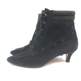 Manolo Blahnik Lace-Up Ankle Boots Black Suede Size 38.5 Pointed Toe Kitten Heel