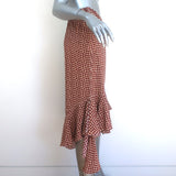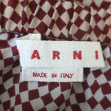 Marni Asymmetric Ruffle Skirt Burgundy & Beige Checkered Silk Size 40