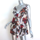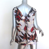 Marni Ruffled Double V-Neck Tank Top Light Blue Floral Print Silk Size 42