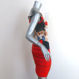 Alaia Zebra Jacquard Metallic Knit Mini Dress Red/Black Stretch Knit S...