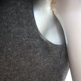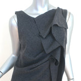 Max Mara Ruffle Dress Charcoal Wool Herringbone Size 46 Sleeveless Sheath