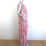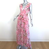 MISA Claudita Ruffled Maxi Dress Light Pink Printed Chiffon Size Small