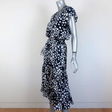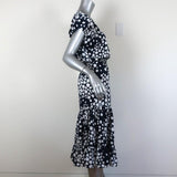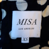 MISA Midi Dress Anali Navy/White Polka Dot Size Extra Small Cap Sleeve