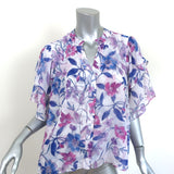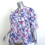 MISA Top Livia Metallic Floral Print Size Medium Ruffle Sleeve Blouse NEW