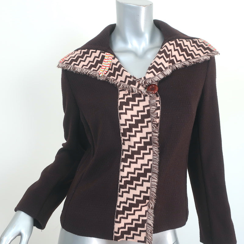 Missoni Fringed Knit-Trim Jacket Dark Brown Wool-Blend Size US 6