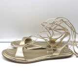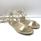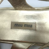Miu Miu Ankle Wrap Flat Gladiator Sandals Gold Metallic Leather Size 38.5