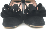 Miu Miu Bow Pumps Black Suede Size 38 Square Toe Heels