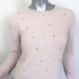 Miu Miu Crystal & Faux Pearl-Embellished Cashmere Sweater Light Pink Size 40