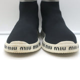 Miu Miu Logo Sock Sneakers Black Stretch Knit Size 38