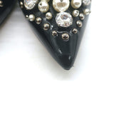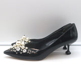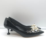 Miu Miu Pearl & Crystal-Embellished Low-Heel Pumps Black Patent Leather Size 38