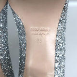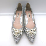 Miu Miu Pearl & Crystal-Embellished Low-Heel Pumps Silver Glitter Size 38