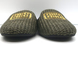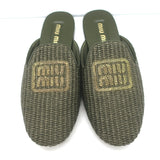 Miu Miu Raffia-Effect Logo Slippers Military Green Size 38.5 Flat Mules