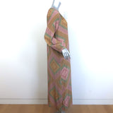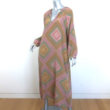 Momoni Lela Long Sleeve Maxi Dress Pink/Beige Printed Silk Size 40