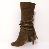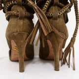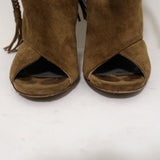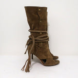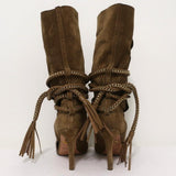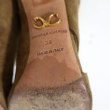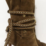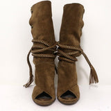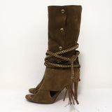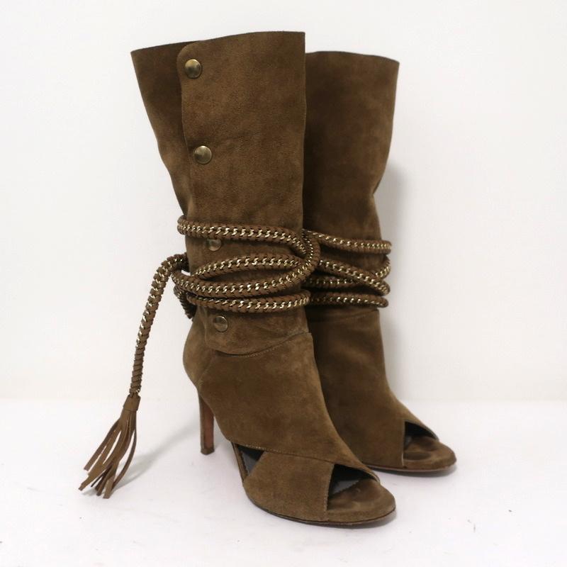 Monika Chiang Braided Chain Boots Armena Brown Suede Size 35 Open Toe Heel