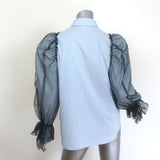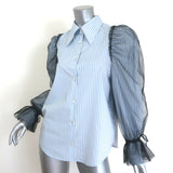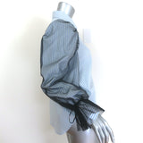 Moussy tulle-sleeve striped blue cotton long-sleeve top blends delicate, sheer detailing with everyday comfort for a refined, wearable look you can dress up or down.