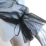 - Style details: Tulle sleeves with a striped, stretch-cotton body; long sleeves for versatile layering.