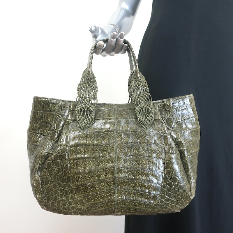 Nancy Gonzalez Crocodile Medium Shoulder Bag Olive Green