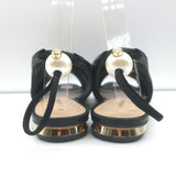 Nicholas Kirkwood Delfi Faux Pearl Slingback Sandals Black Leather Size 37