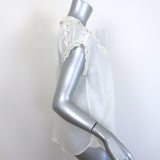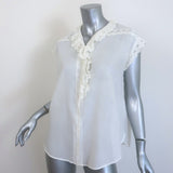 Nili Lotan Leanne Ruffled Lace-Trim Top Cream Size Small Sleeveless Blouse