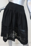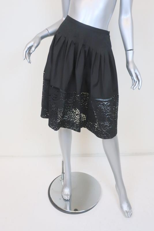 No. 21 Lace-Hem Flared Skirt Black Pleated Cotton Size 40 NEW -