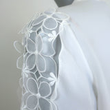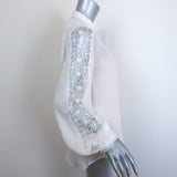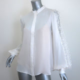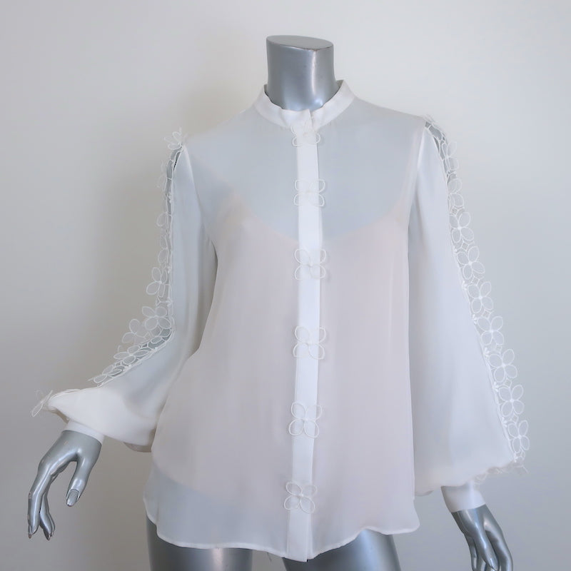 Oscar de la Renta Organza Flower-Trimmed Blouse Cream Silk Size 6 NEW