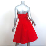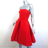 Oscar de la Renta Strapless Pleated Cocktail Dress Red Silk Faille Size 6