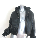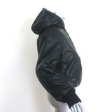 Oval Square Tempo Leather Hooded Bomber Jacket Black Size Extra Small