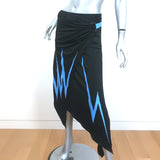 Paco Rabanne Asymmetric Wrap Skirt Black Zig Zag Print Jersey Size 42 NEW Measurements