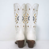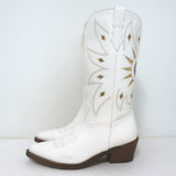 Partlow Abigail 55 Metallic-Embroidered Cowboy Boots White Leather Size 39
