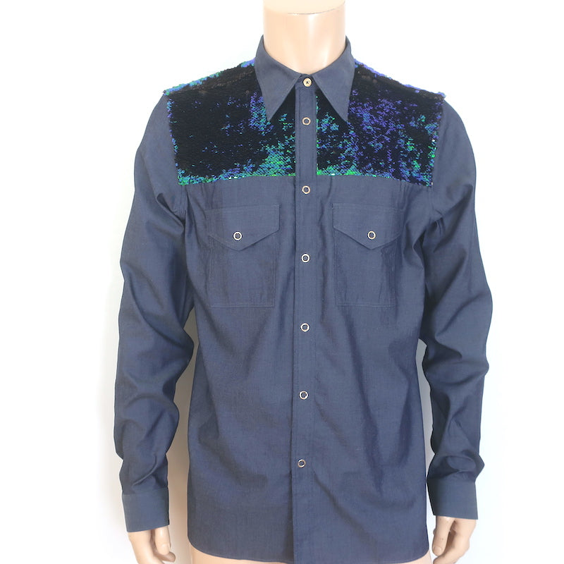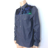 Paul Smith Sequined Yoke Snap-Front Shirt Blue Chambray Size Extra Large
