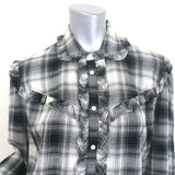Polo Ralph Lauren Ruffle-Trim Plaid Western Shirt Black/Cream Size Medium NEW
