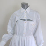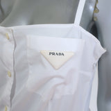Prada Convertible Pleated Midi Dress White Cotton Poplin Size 40 NEW