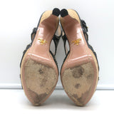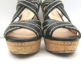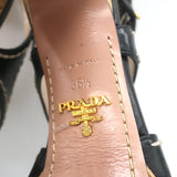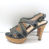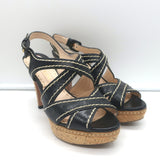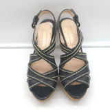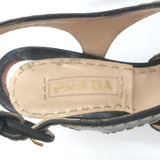Prada Cork Platform Crisscross Sandals Black Leather Size 36.5 Slingback Heels
