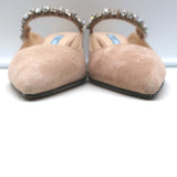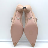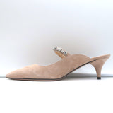 Prada Crystal Strap Mules Beige Suede Size 38 Pointed Toe Kitten Heel Pumps
