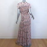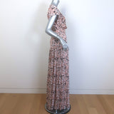 Ulla Johnson Skye Tiered Dress Burgundy Floral Print Silk Georgette Si...