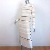 Proenza Schouler Rachel Side-Button Striped Rib Knit Midi Dress Ecru Size Medium
