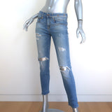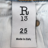 R13 Boy Skinny Ripped Jeans Bowers Blue Stretch Denim Size 25