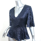 Rachel Zoe Clover Sequin Peplum Top Navy Size 4 Flutter Sleeve Blouse