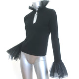Ralph Lauren Black Label Ruffle-Trimmed Cashmere Sweater Black Size Small