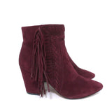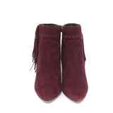Rebecca Minkoff Fringe Ankle Boots Ilan Wine Suede Size 9 Pointed Toe Booties