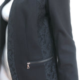 Rebecca Taylor Blazer Black Lace-Trim Twill Size 8 Open Front Jacket