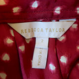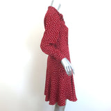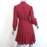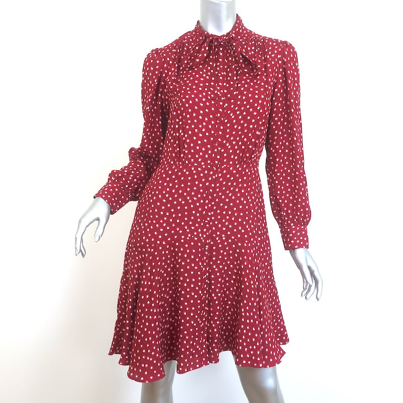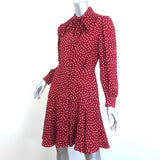 Rebecca Taylor Heart Print Tie-Neck Dress Red Silk Size 2 Long Sleeve Shirtdress