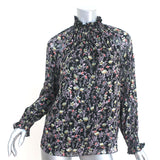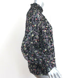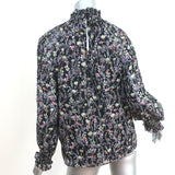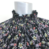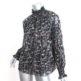 Rebecca Taylor High Neck Top Black Floral Print Size 2 Long Sleeve Blouse